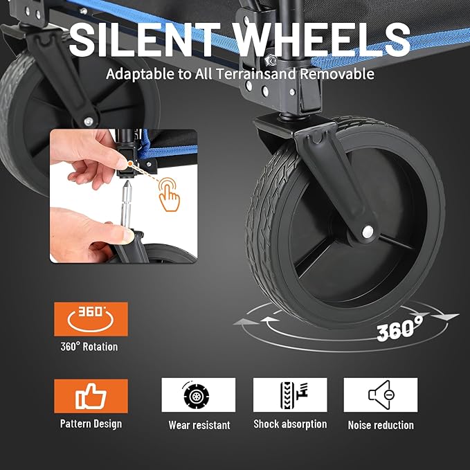 EchoSmile Collapsible Foldable Wagon Cart with 350lbs Weight Capacity, Heavy Duty Folding Utility Sport Wagon with Removeble Wheels for Camping,Grocery,Garden,Beach,Black &Blue