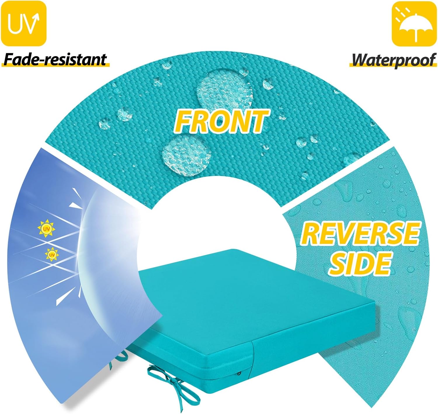 AAAAAcessories Outdoor Seat Cushions for Chairs, Waterproof, Fade-Resistant Patio Furniture Replacement Cushions, 19" x 19" x 3", Set of 2, Turquoise