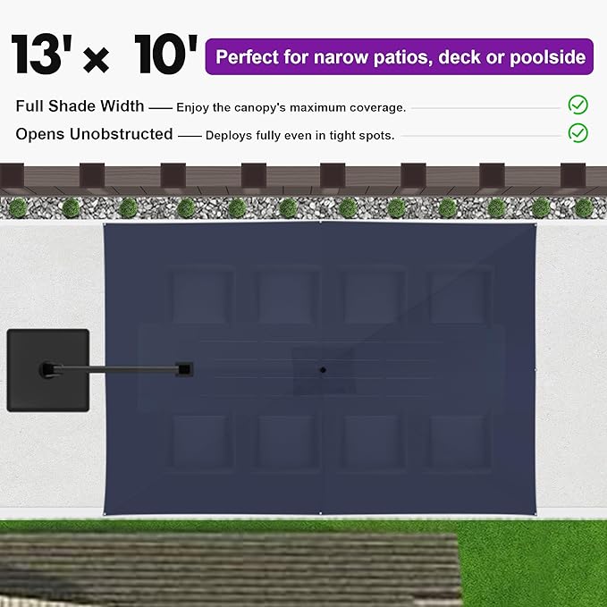 - Extra Large Shading Area: A 13' X 10' large canopy provides a large area shade for multiple people and this patio umbrella is larger than most umbrellas on the market, ideal for your big family and friends at the garden, deck or pool