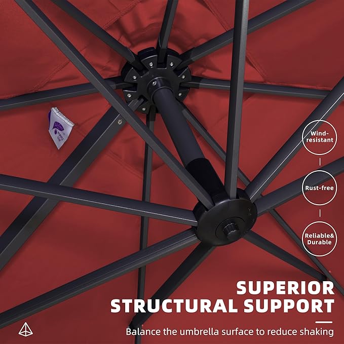- All-aluminum umbrella bones and 8 heavy-duty ribs, anti-oxidation spray painted, maintain a long period life