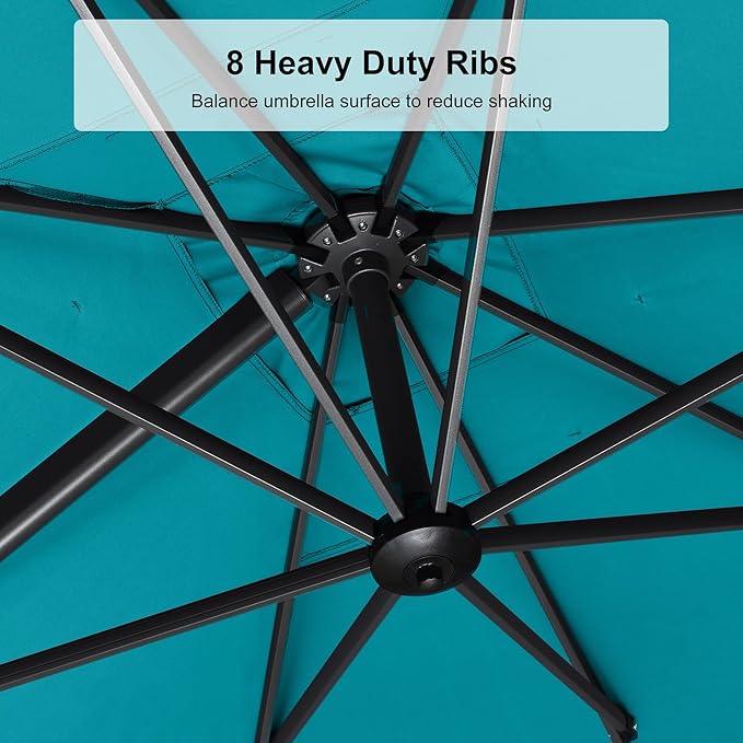 PURPLE LEAF 9' X 12' Left-right Tilt Patio Umbrella Outdoor Cantilever Swivel Rectangle Umbrella Aluminum Offset Umbrella with 360-degree Rotation for Garden Deck Pool Patio Turquoise Blue