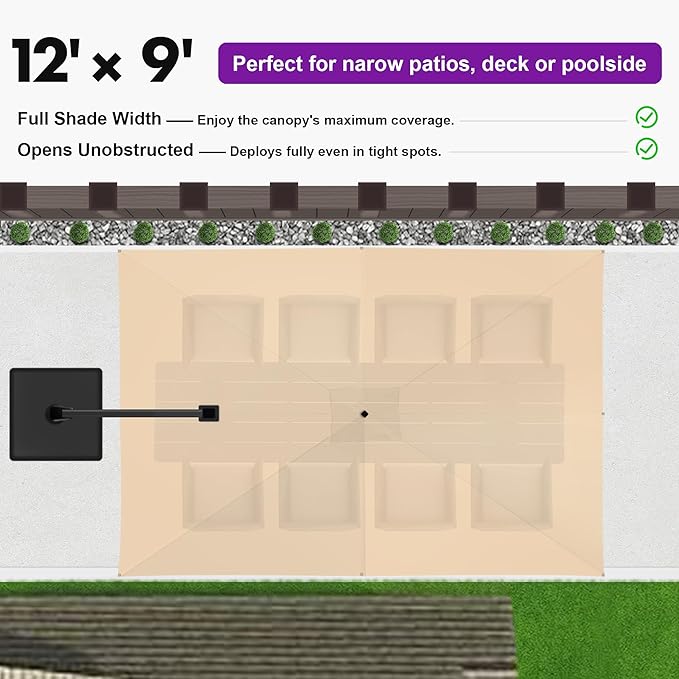 - Extra Large Shading Area: A 12' X 9' large canopy provides a large area shade for multiple people and this patio umbrella is larger than most umbrellas on the market, ideal for your big family and friends at the garden, deck or pool