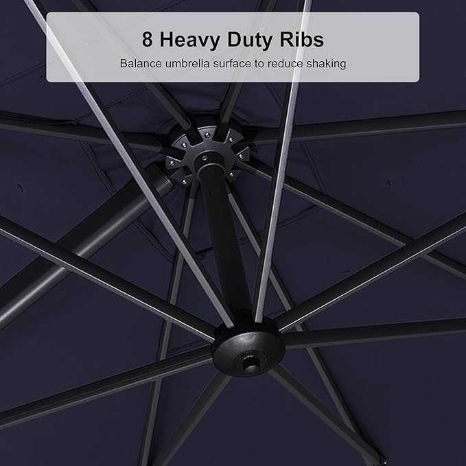 PURPLE LEAF 9' X 12' Left-right Tilt Patio Umbrella Outdoor Cantilever Swivel Rectangle Umbrella with Tilt Aluminum Offset Umbrella with 360-degree Rotation for Garden Deck Pool Patio Navy Blue