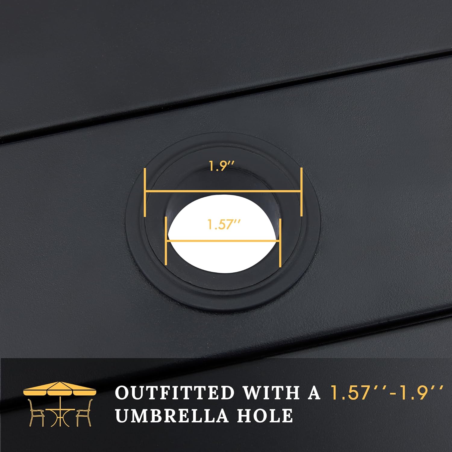 - 【Size Information】Patio Table- 40.2"x 40.2"x 28.3", adjustable umbrella hole:1.57“-1.9", weight capacity: 250 lbs. Outdoor Chairs- 22.4"x 20.5"x 34.3", weight capacity: 250 lbs