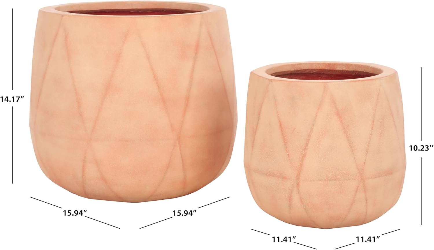 SAFAVIEH Outdoor Collection Kane Terracotta Cement Ficonstone Planter Pot Set of 2