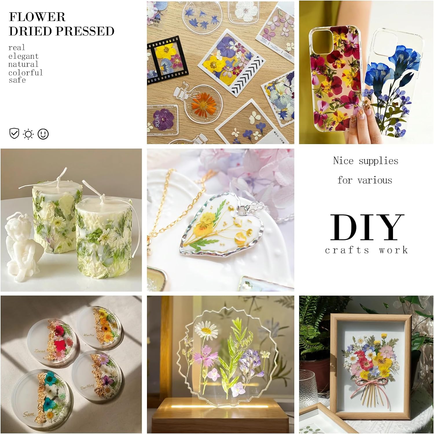 - Different Uses: The DIY art of dried flowers adds natural beauty and a hint of creativity to your life. Them perfect for resin molds, jewelry making, scrapbook supplies, phone case, candle making, bookmark, greeting cards, wall painting, photo frame, nail art, face makeup and home decoration etc.