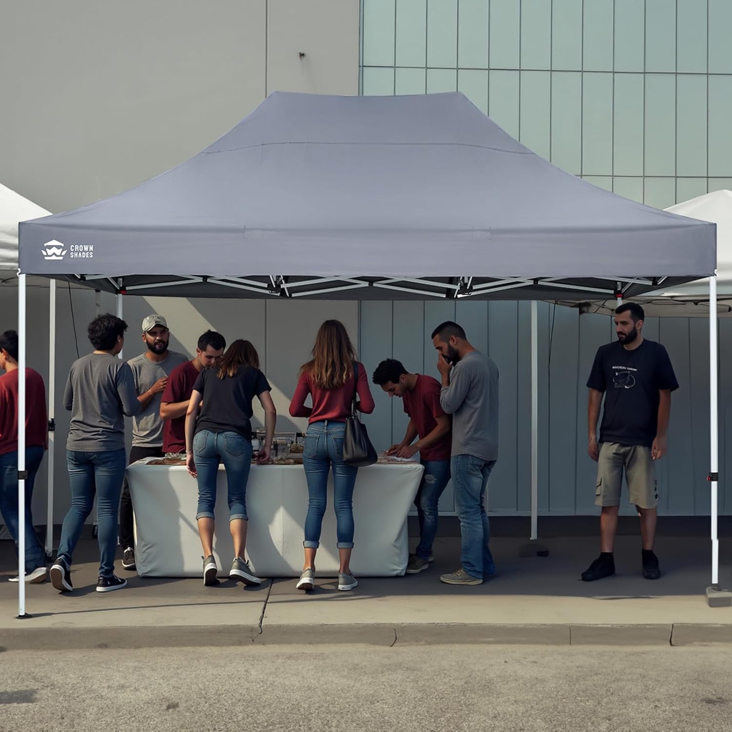 CROWN SHADES 10x15 Pop Up Canopy Tent, Thicken Frame Commercial Heavy Duty Tent, 8 Stakes & 4 Sandbags & 4 Ropes, Outdoor Canopies for Events, Parties,Grey