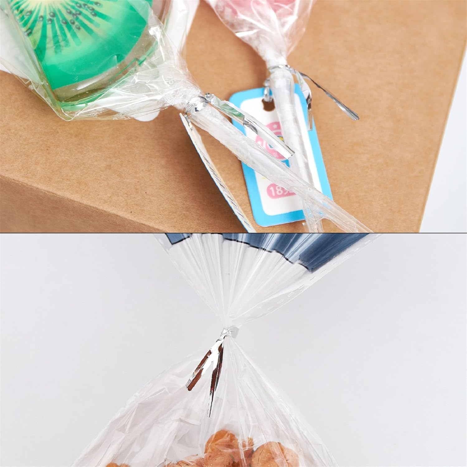 - Silver Metallic Twist Ties for Tying your Favors, Crafts, Bread, Cookies Bags, Candy, Candles, lollipop and Baked Goods! The Texture of metallic plastic twist ties is soft, easy to tie and untie.
