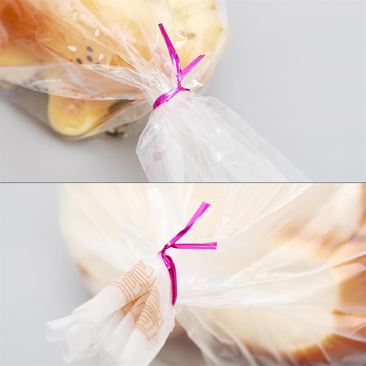 - Rose red metallic twist ties for tying your favors, Crafts, Bread, Cookies Bags, Candy, Candles, lollipop and Baked Goods! The Texture of metallic plastic twist ties is soft, easy to tie and untie.