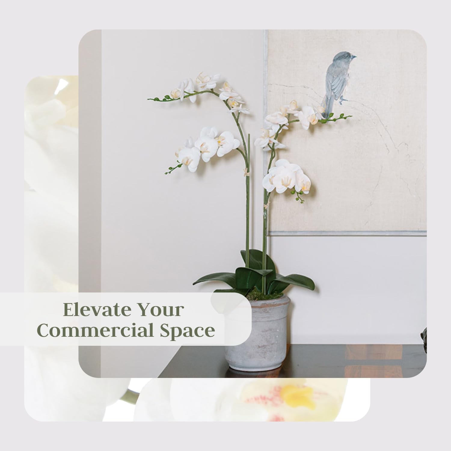 - CG Hunter Faux White Orchid Plant, Premium Artificial Indoor Flower Display Stands 24”, Beautiful Sculptural Blooms That Lasts Forever, Grey Planter Pot Included