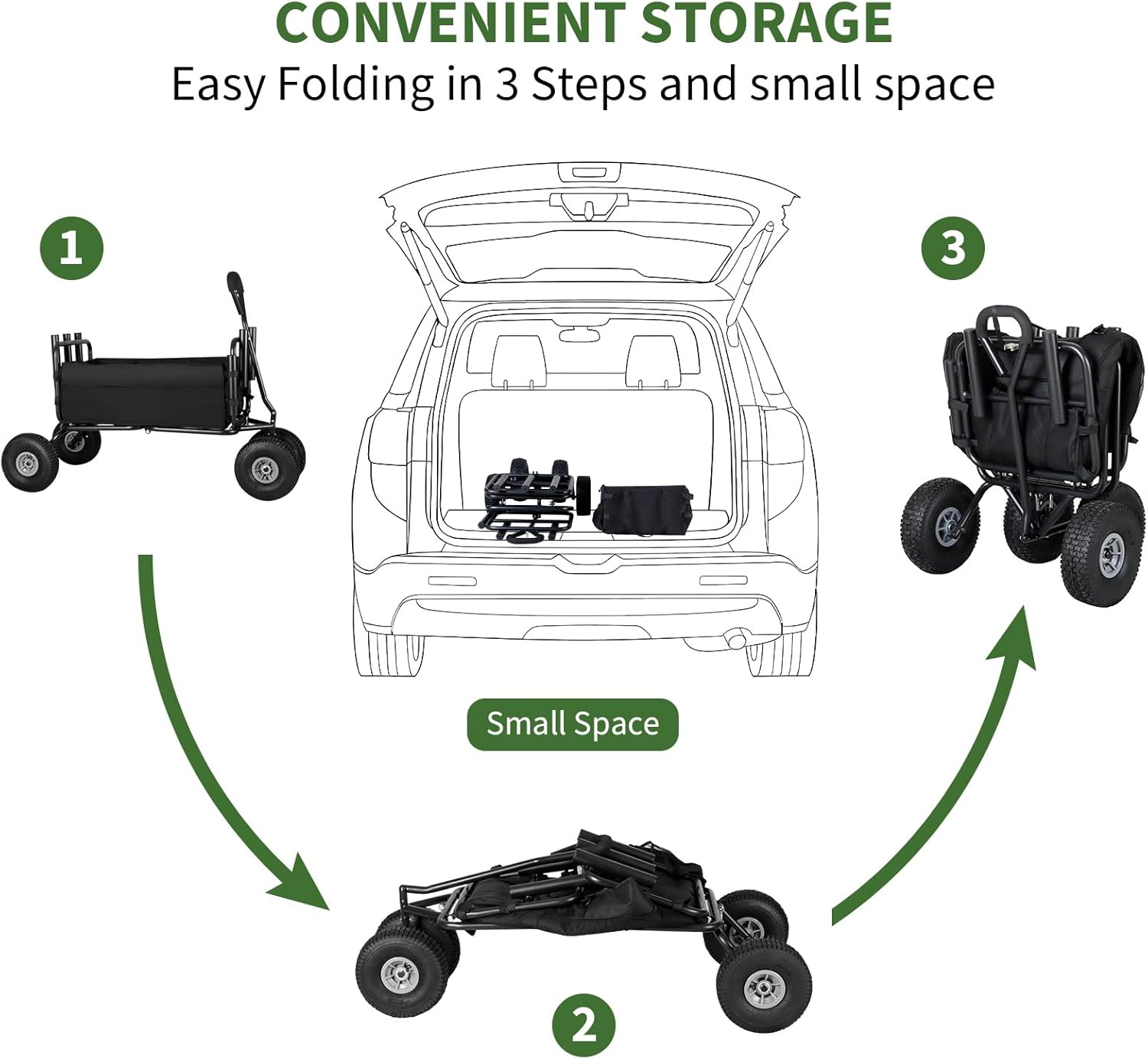 - Enlarged Wheels:The collapsible wagon is fitted with 11-inch solid wheels and bearings. It’s not only has strong resilience,wear-Resistant but also more flexible and roll smoother.11”Wheels rolling with less noise and suitable for all Terrains