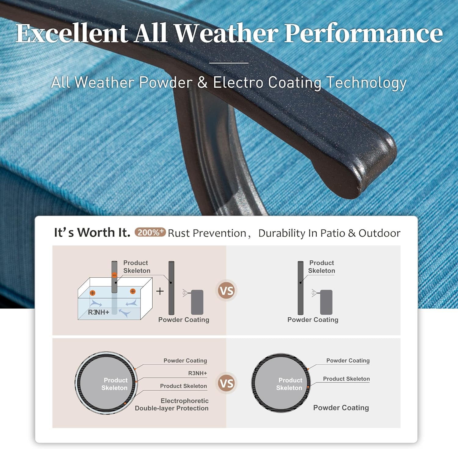 - ALL WEATHER METAL OUTDOOR PATIO CHAIRS: Our metal outdoor rocker chairs focuses on providing a superior comfort experience. 31.5 Inch seating depth and 35 Inch high back design with 5.75" Inch high resilience cushions provide you with unrivalled outdoor seating relaxation experience. This outdoor furniture's diamond back design make this outdoor furniture more unique and exquisite.