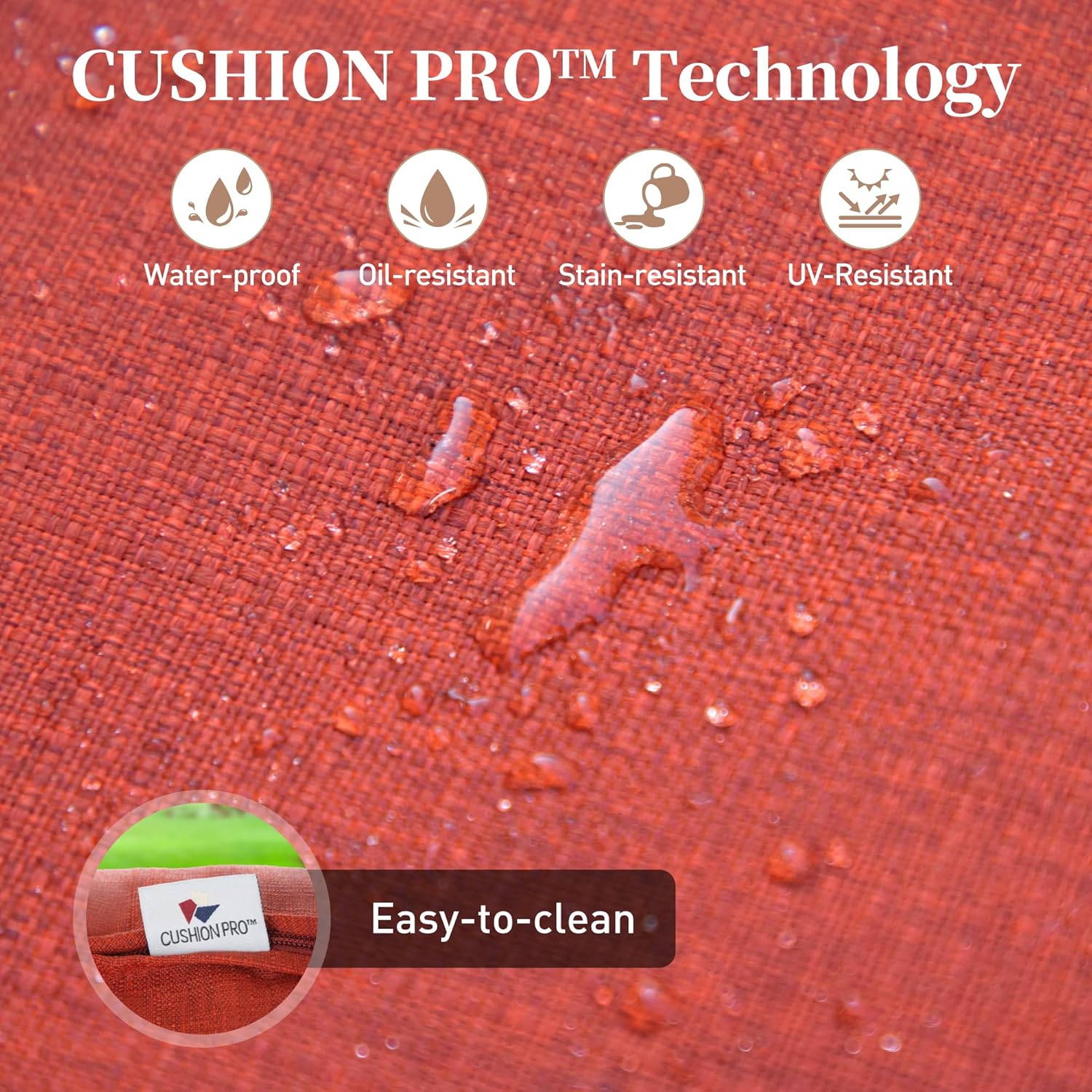 - ADVANCED CUSHION FABRIC TECH: Experience the happiness of easy maintenance with the SUNSHINE VALLEY outdoor rocker chairs. The fabric of this patio sofa is made with patent CUSHION PRO technology. It has excellent waterproof, oil-proof, and stain-resistant properties making the dirt easily wiped down. It can really meet your outdoor leisure needs