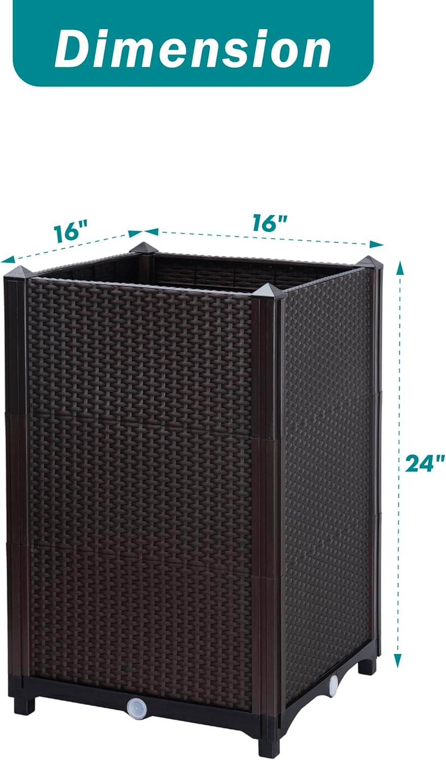 - 【Size】16”(L) x 16”(W) x 30"(H) inches; Inner dimension for each planting box: 14”(L) x 14”(W) x 28"(H) inches.