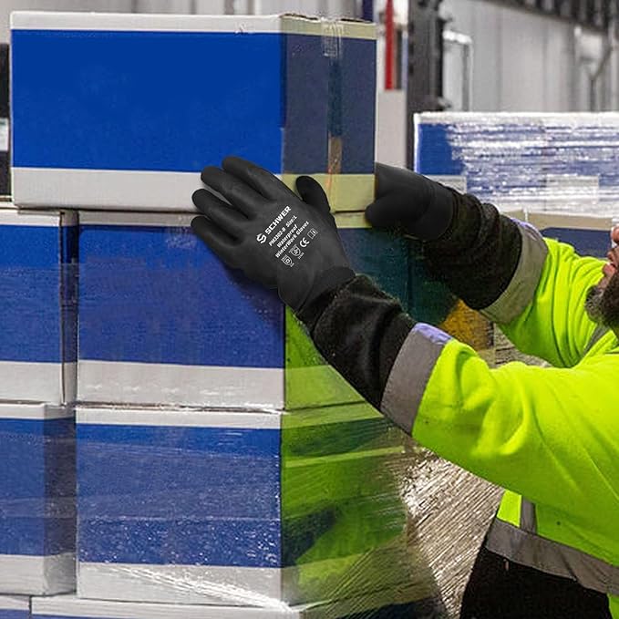 Schwer Waterproof Winter Work Gloves, ANSI A2 Cut Resistant Freezer Gloves for Outdoor Cold Weather Keep Hands Warm, Thermal Insulated Gloves for Shoveling Snow, Ice Fishing, Super Grip, XXL