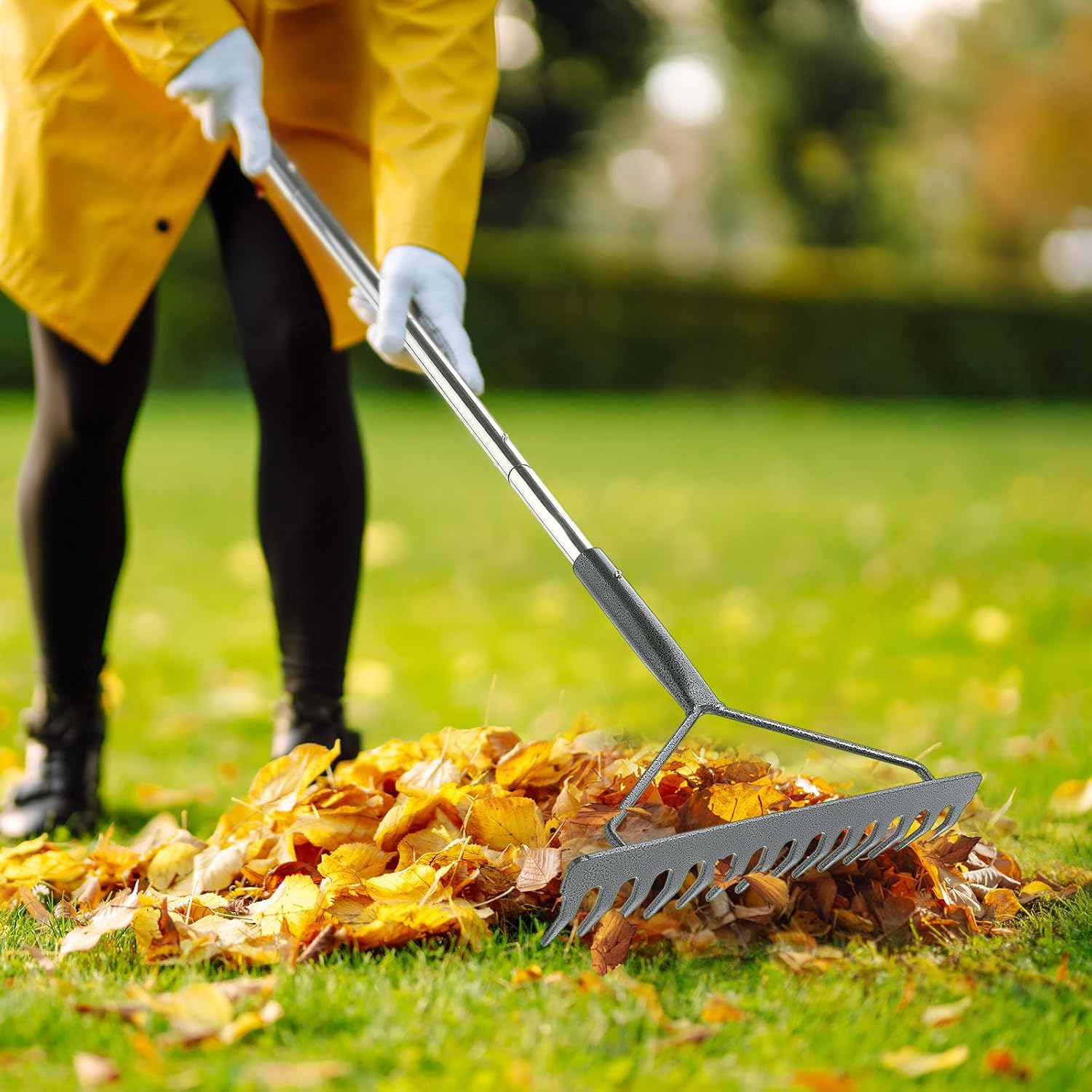 - Rustproof Coated Metal Rake--The rake head, rake tongs and rake handle are constructed of strong metal with anti rust and anti corrosion coating.