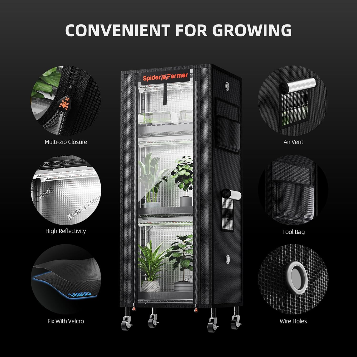 Spider Farmer 2025 4-Tier Plant Stand with 6Pcs 12" Full Spectrum 5000K LED Grow Lights and Tent Cover Mini Greenhouse Height Adjustable for Seed Starting Indoor Plants Growth 16Lx12Dx47H