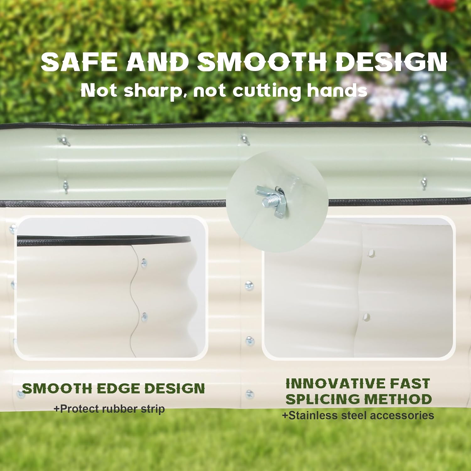 - Durable Material: This robust and durable planter box is constructed from high-quality galvanized steel, featuring a wall thickness of 0.6 millimeters. The surface is treated with an anti-rust coating, while the overlapping sections achieve a maximum thickness of 1.2 millimeters. For your convenience, the product includes a screwdriver and gloves.The black rubber sealing edge not only effectively prevents hand injuries but also enhances both the stability and aesthetic appeal of the flower bed