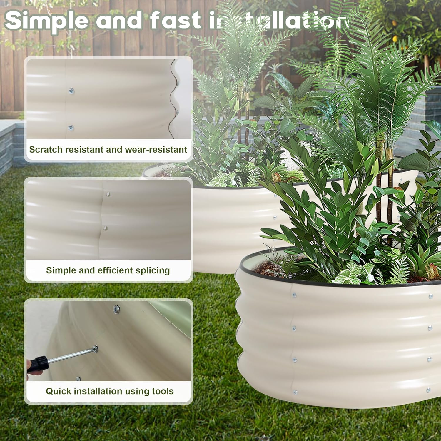 - Multiple Applications: The outdoor galvanized garden beds can be used not only for planting vegetables such as potatoes, sweet potatoes, tomatoes, and peppers, but also for beautifying the yard by planting flowers, succulents, and herbs. At the same time, it can also serve as a fire pit for family members to enjoy the fun of a bonfire together.This makes it an excellent choice for cultivating vegetables in your garden