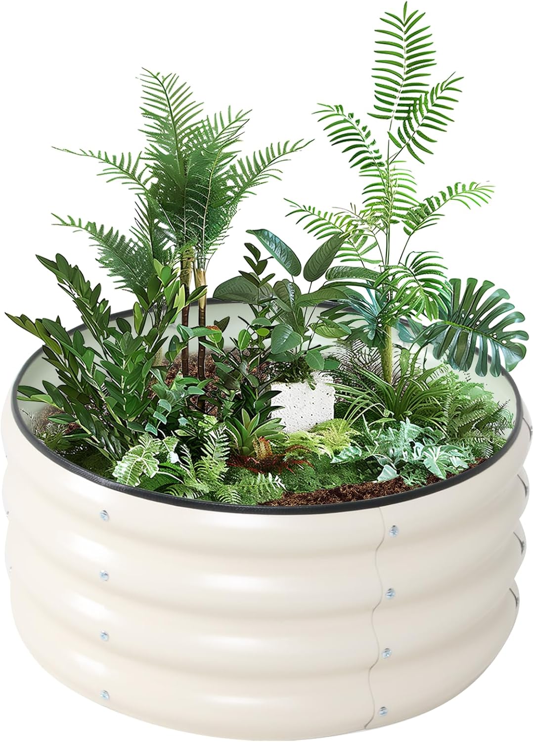Galvanized Raised Garden Bed Kit Outdoor Metal Garden Planter Box for Backyard Gardening, Planting Vegetables, and Patio (Dia23.6"x11.8")