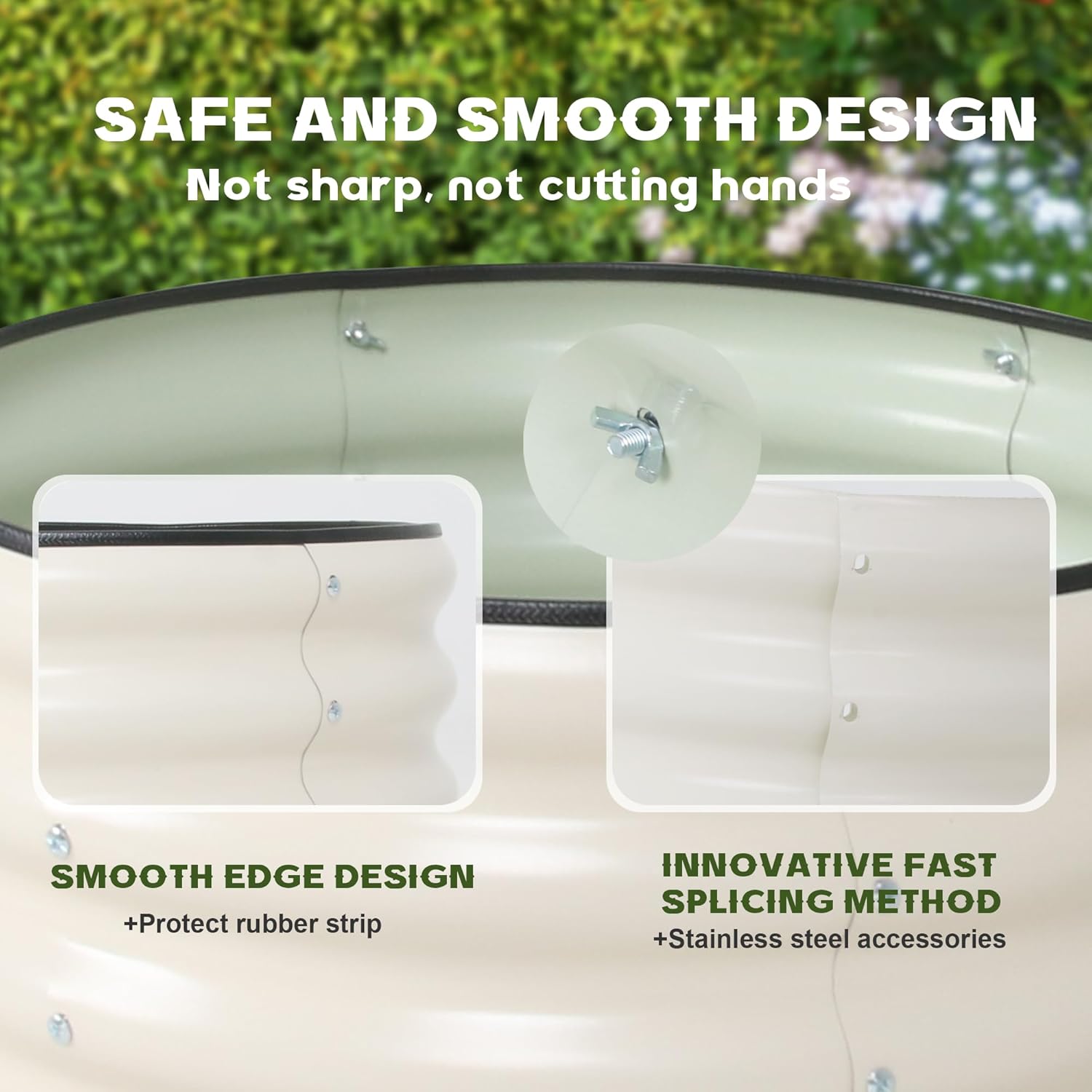 - Multiple Applications: The outdoor galvanized garden beds can be used not only for planting vegetables such as potatoes, sweet potatoes, tomatoes, and peppers, but also for beautifying the yard by planting flowers, succulents, and herbs. At the same time, it can also serve as a fire pit for family members to enjoy the fun of a bonfire together.This makes it an excellent choice for cultivating vegetables in your garden