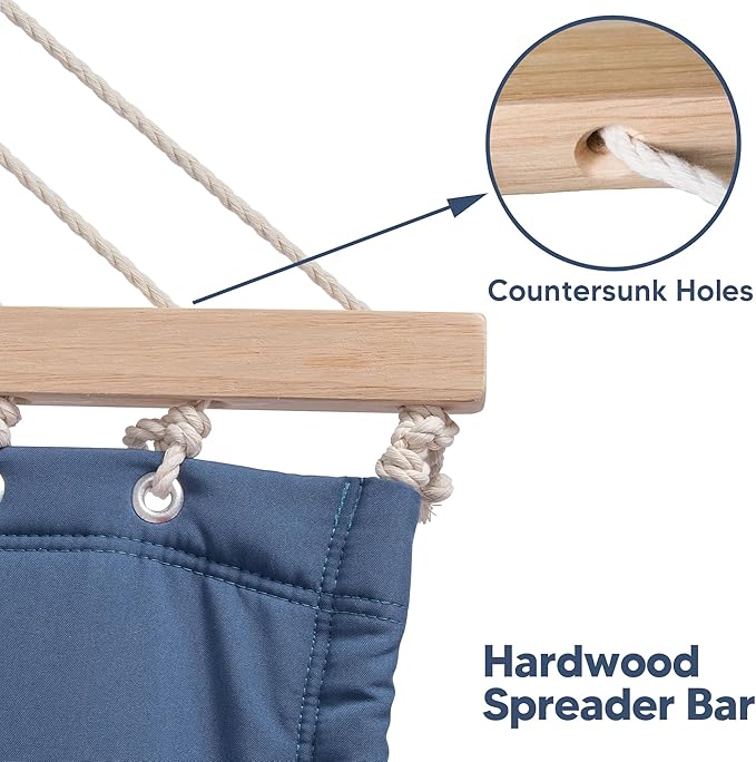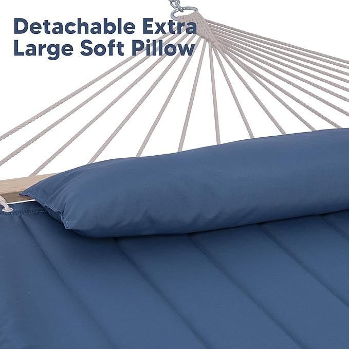 - Comfortable and Non-fading: Two-layer quilted polyester fabric with poly fiber filling which is cozier, best for camping and outdoor activities. Compared with other quilted hammocks, it will not fade after long-term usage. A polyethylene-stuffed head pillow offers superior comfort