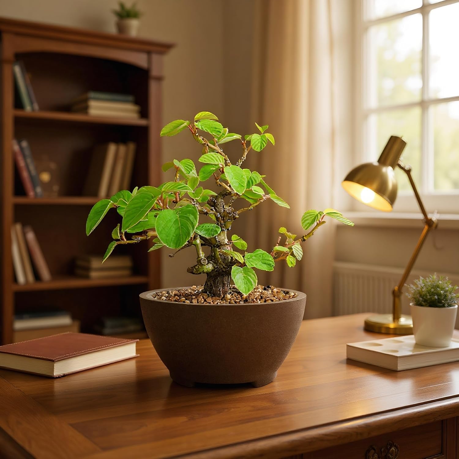 Round Unglazed Bonsai Pots with Drainage Holes 7” Breathable Planter Sand-Textured Short Legs Large Bonsai Tree Pots Ceramic for Indoor Plants Succulent