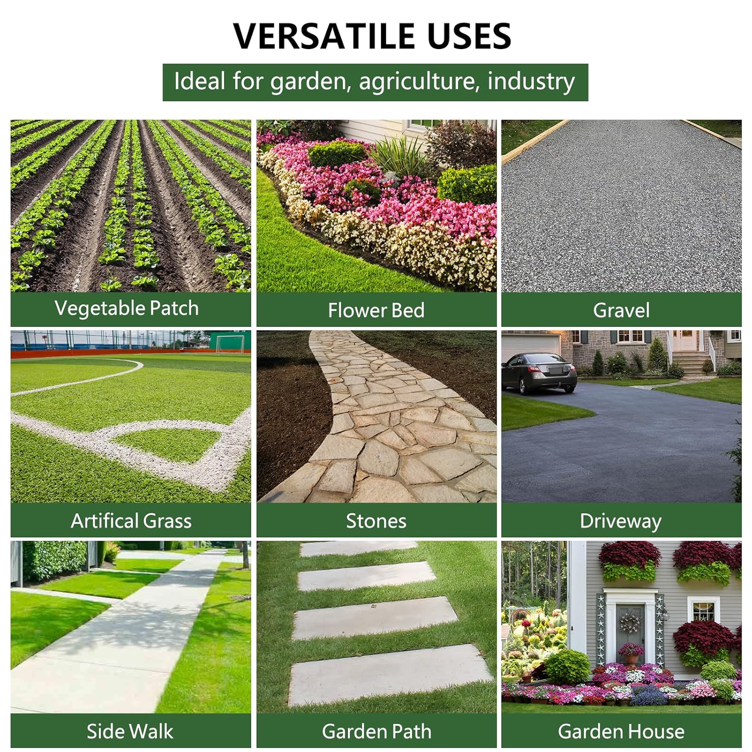 - Wide Application: Our durable garden weed cloth will keep annoying weeds away from your garden. The weed mat fabric is ideal for garden, agriculture, industrial uses, such as a greenhouse, vegetable patch, flower bed, artificial grass, sidewalk, gravel, driveway, stones, etc.