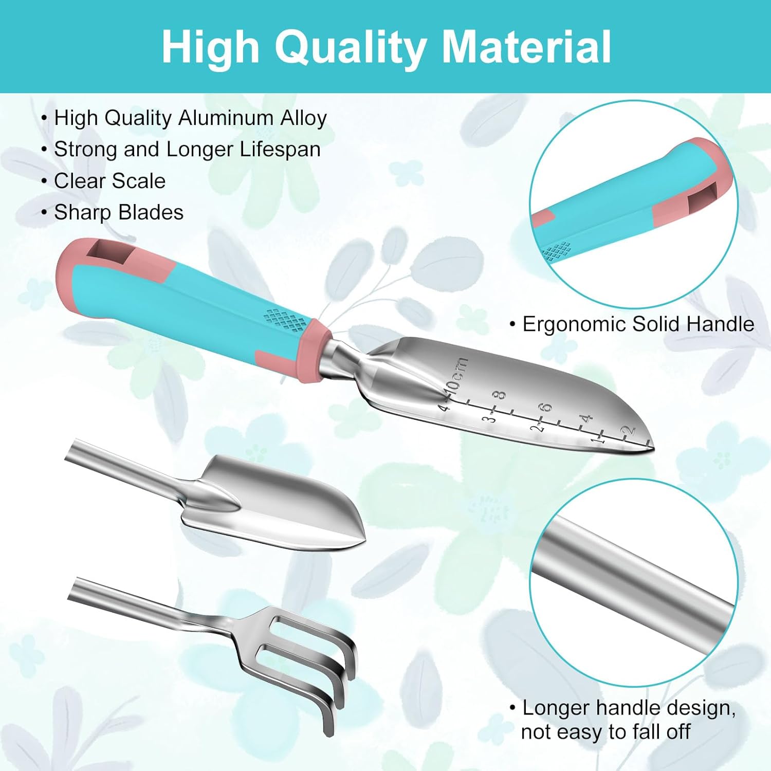 - Durable and Sturdy Design:The gardening tool set is crafted with high-quality aluminum alloy, ensuring rust resistance and exceptional durability, making them the perfect long-term companion for your gardening adventures.