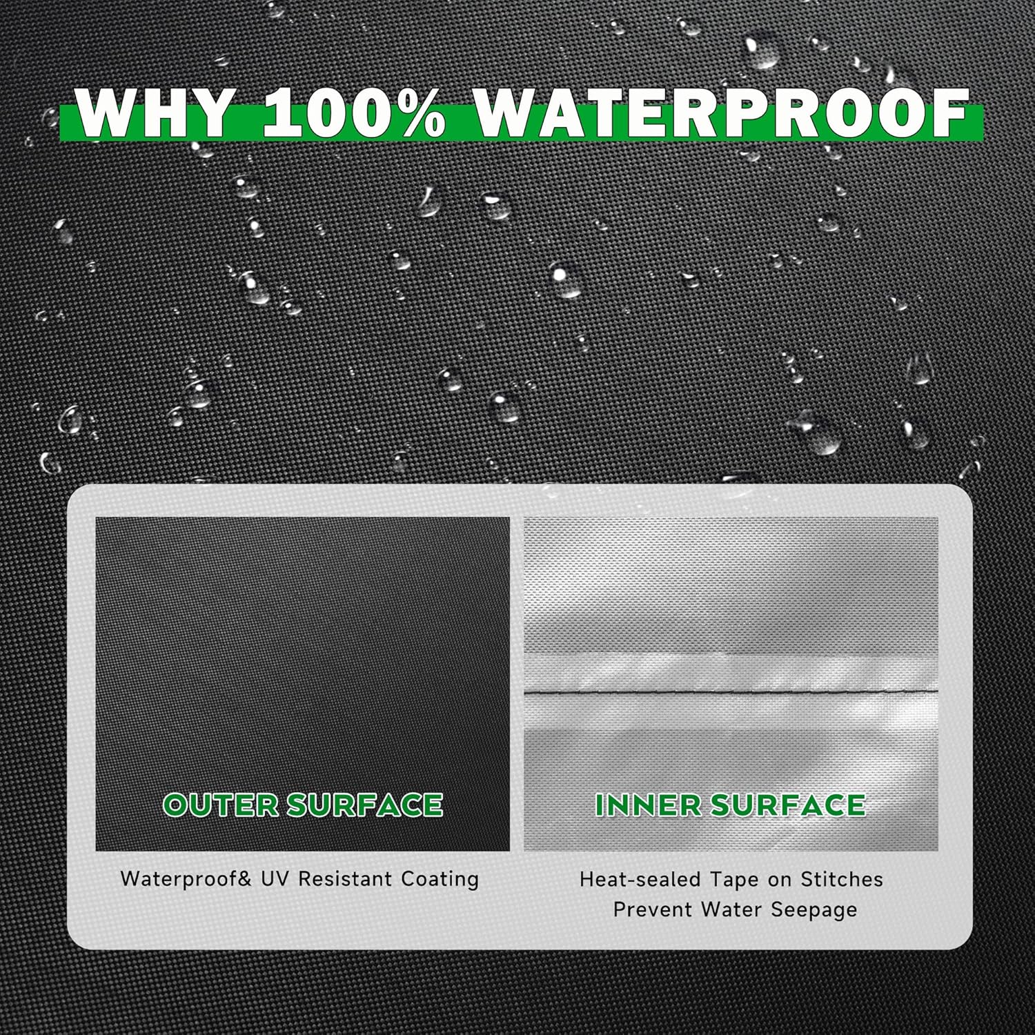 - WATERPROOF & ANTI-UV – Waterproof outer coating and heat-sealed tape on stitches prevent water seepage. Inner PU coating layer protects your work table from damage caused by prolonged sun exposure