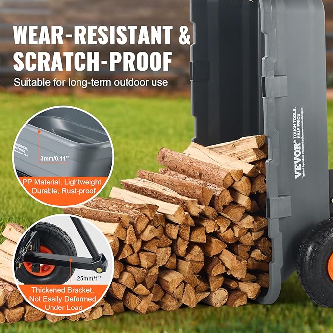 - DURABLE MATERIAL: Our garden wagon is crafted from high-quality 3mm thick PP material, designed to carry loads while retaining its shape. Reinforced with 25mm/1" metal brackets and a scratch-resistant painted coating, it's scratch-resistant and suitable for long-term outdoor use.