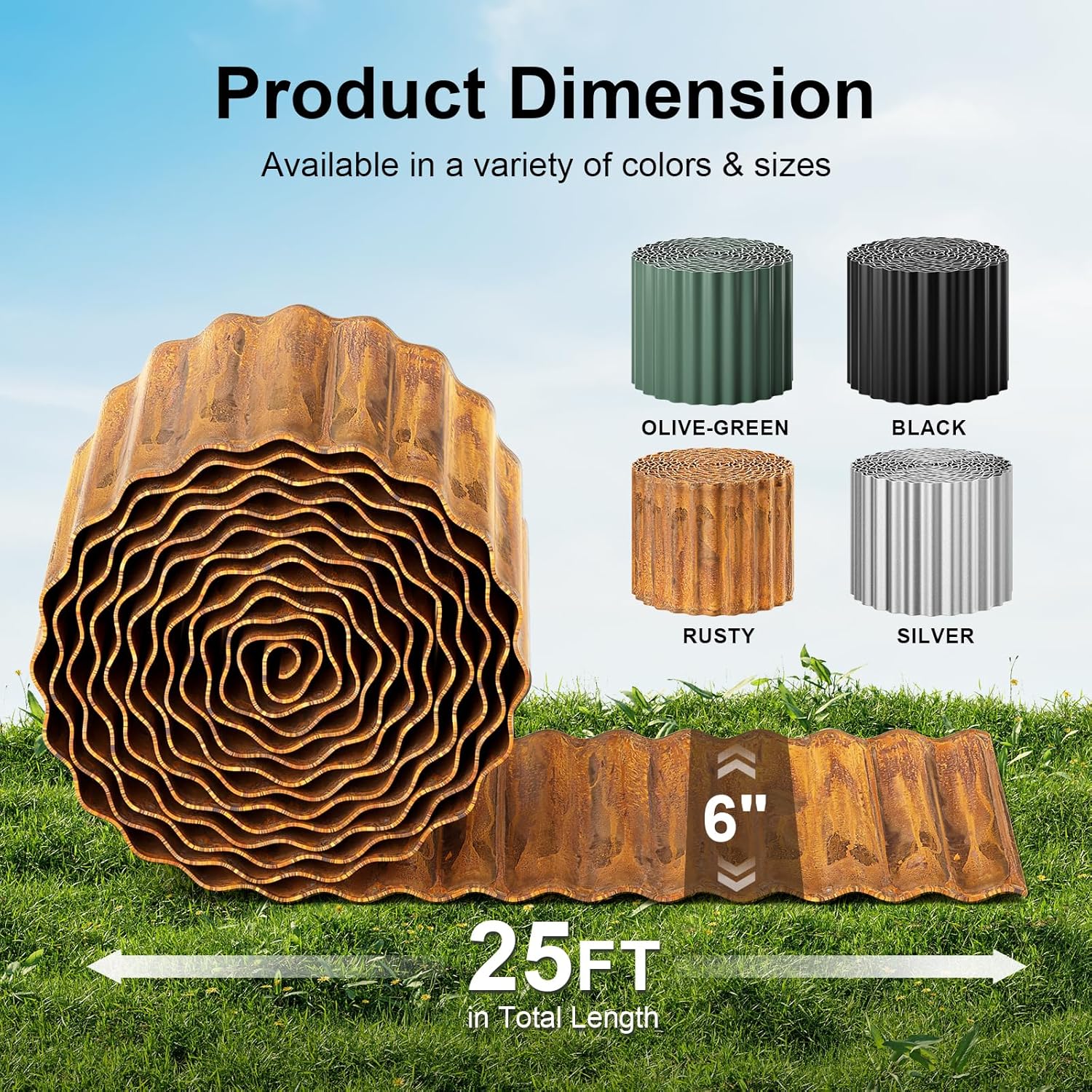 Land Guard Corrugated Garden Edging Border, 6"×25' Landscape Paver Edging, Tall Landscape Edging, Fence for Garden, Flower Bed, Lawn and Landscape Edging (Rusty)