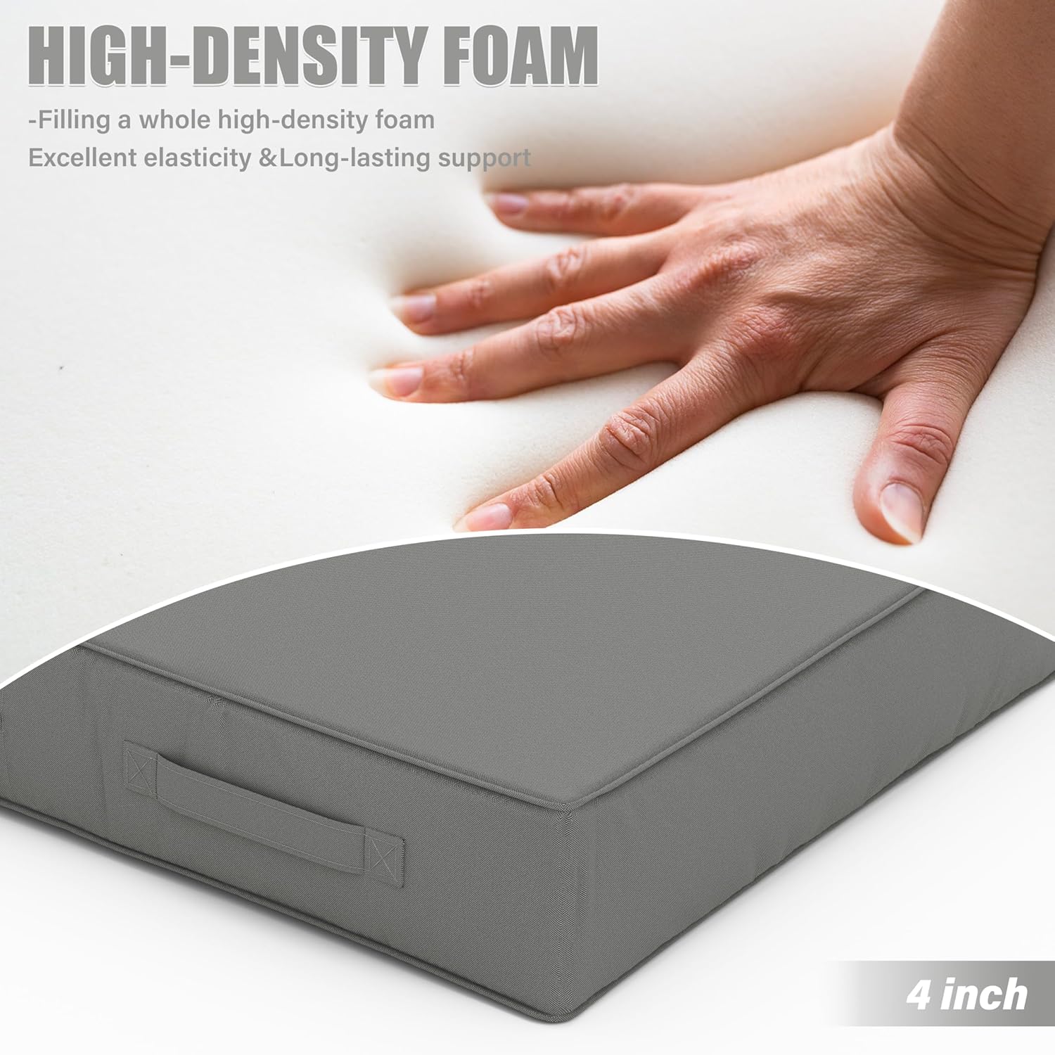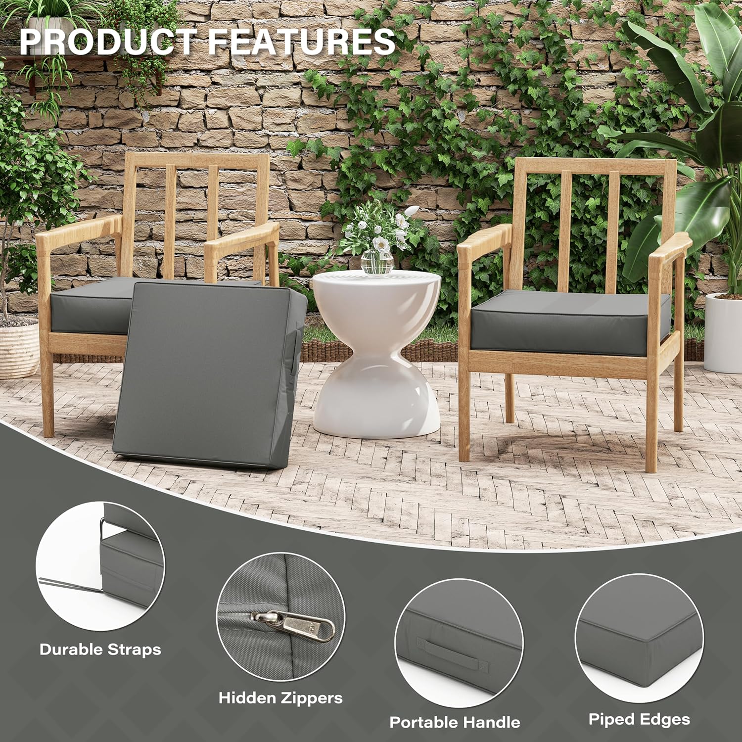 Patio Chair Cushions 19 X 19 X 4 Inch Waterproof Outdoor Seat Cushions for Patio Furniture, Outdoor Sofa Couch Pads with Ties & Handle, Set of 2, Light Grey