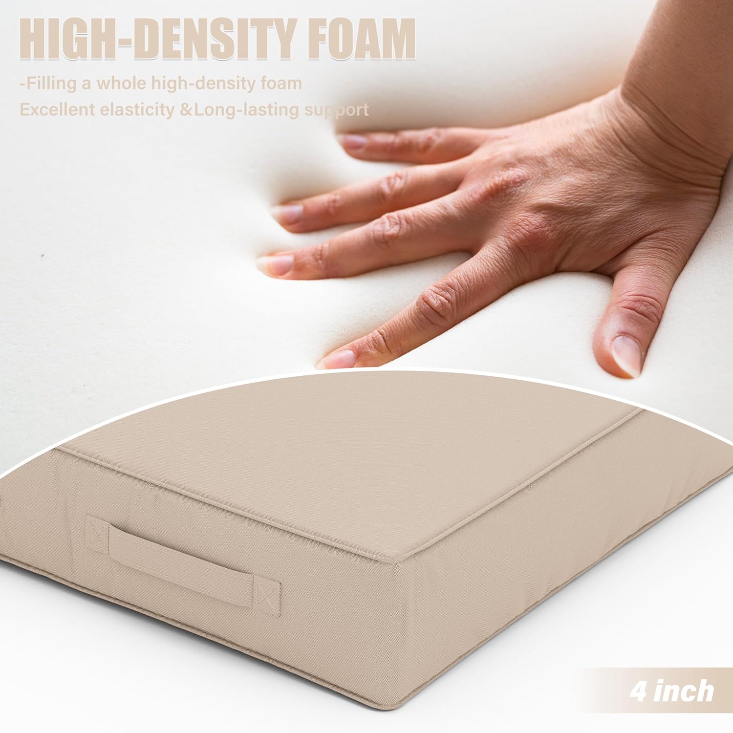 Patio Chair Cushions 19 X 19 X 4 Inch Waterproof Outdoor Seat Cushions for Patio Furniture, Outdoor Sofa Couch Pads with Ties & Handle, Set of 2, Sand
