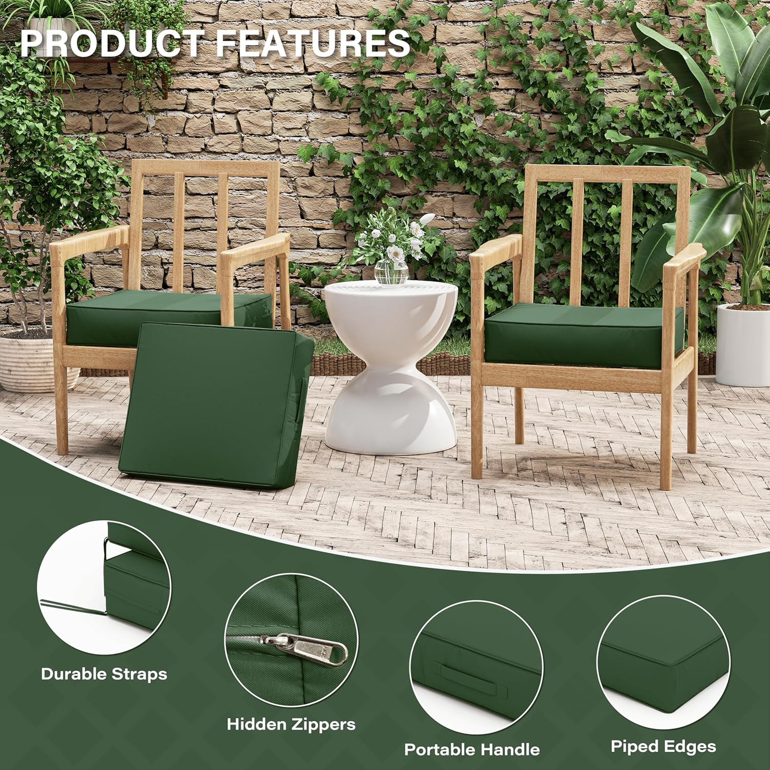 Patio Chair Cushions 18.5 X 16 X 4 Inch Waterproof Outdoor Seat Cushions for Patio Furniture, Outdoor Sofa Couch Pads with Ties & Handle, Set of 2, Green