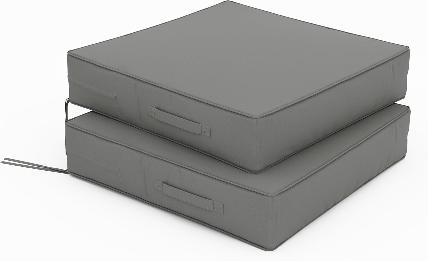 Patio Chair Cushions 24 X 24 X 5 Inch Waterproof Outdoor Seat Cushions for Patio Furniture, Outdoor Sofa Couch Pads with Ties & Handle, Set of 2, Light Grey