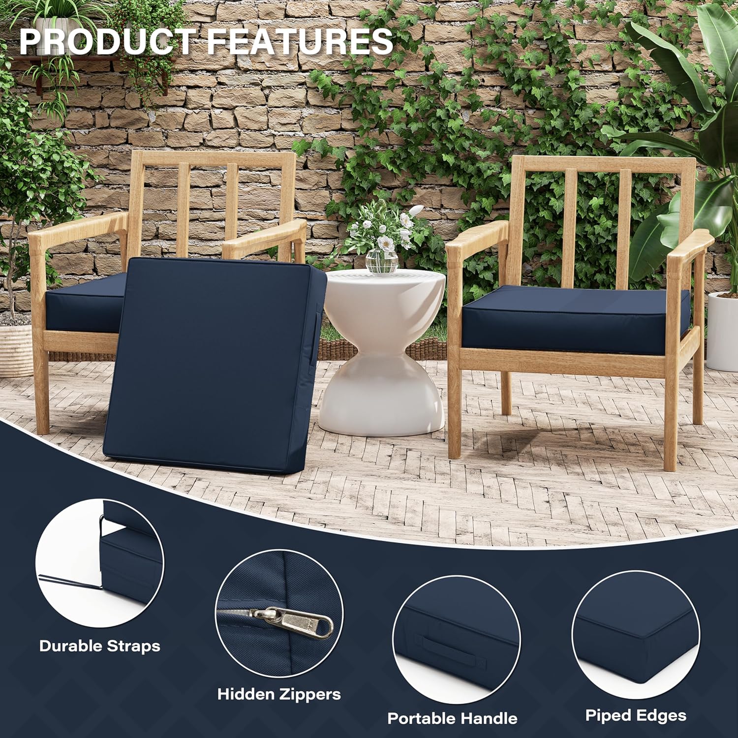 - π WEATHERPROOF - The Patio Furniture Chair Cushion is made of double-layer waterproof coated fabric that is waterproof on all sides, keeping the rain out and keeping the foam dry and tidy. Even in bad weather, it looks brand new with just a little care from you!