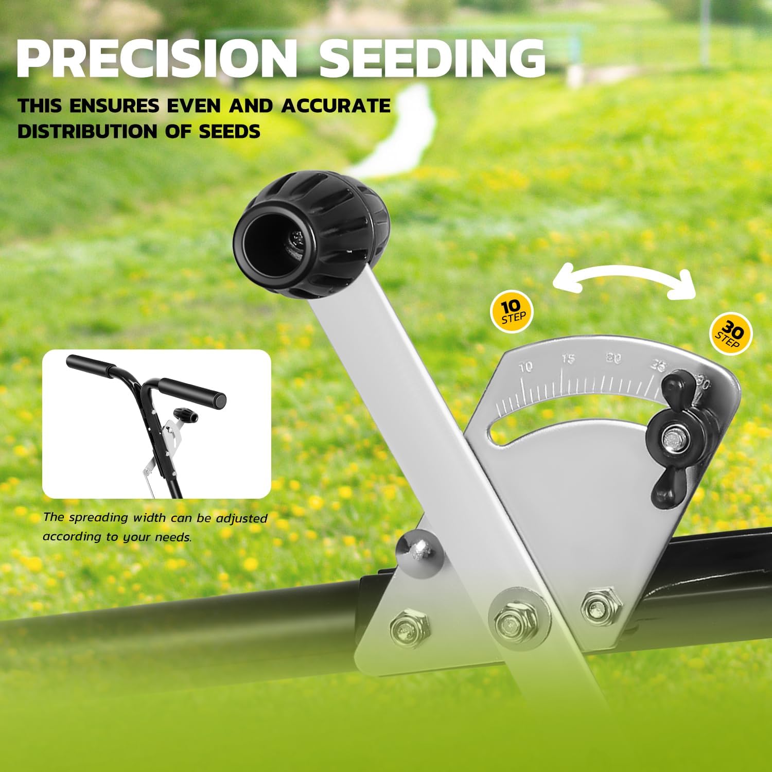 - PRACTICAL FEATURES - By adjusting the switch below the handle, the desired seeding quantity can be set