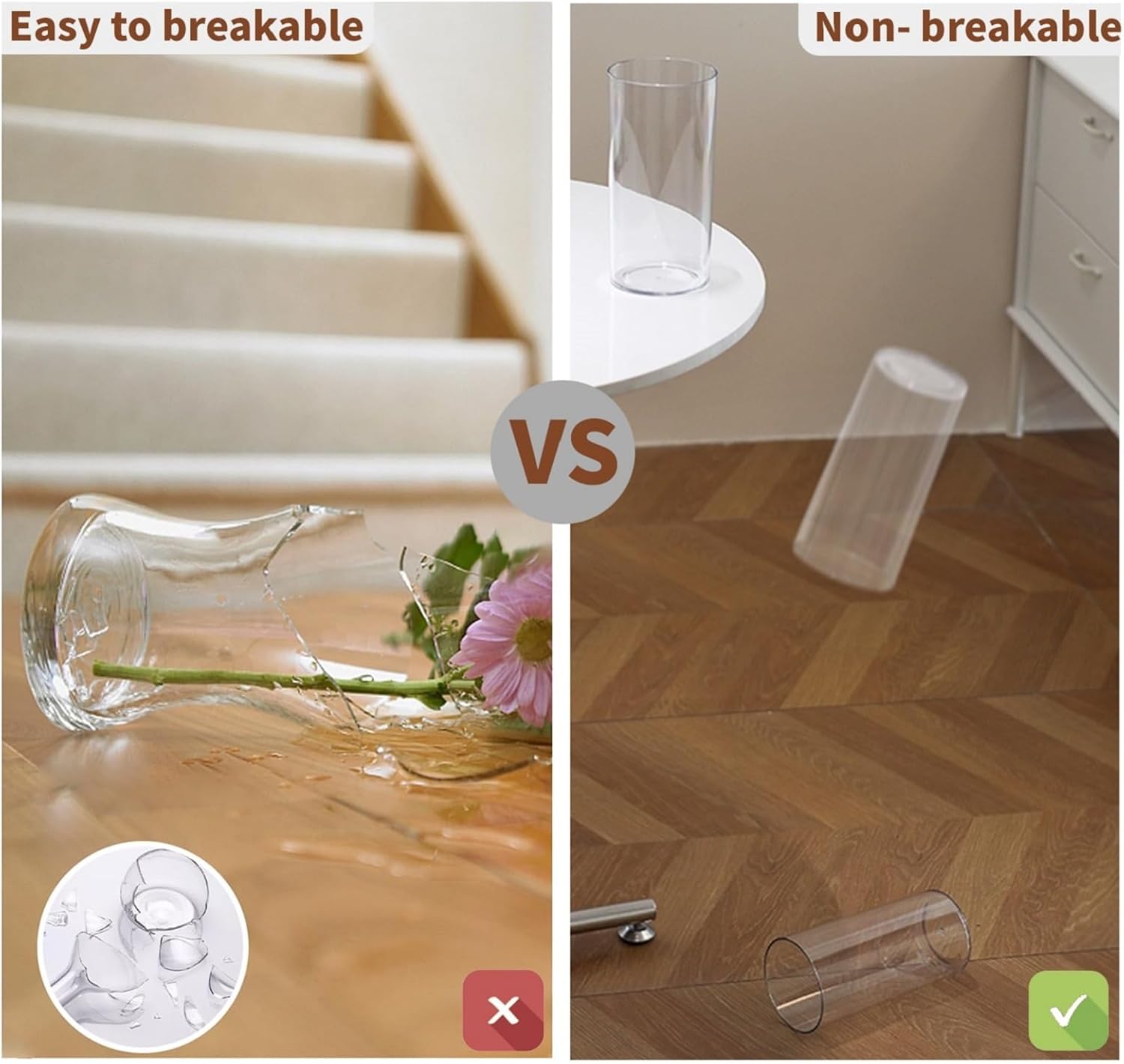 - [Non-breakable] Made of high-quality acrylic material, the vase is sturdy, non- fragile and easy to clean, which will not shatter like glass or ceramic. It’s safe and durable.