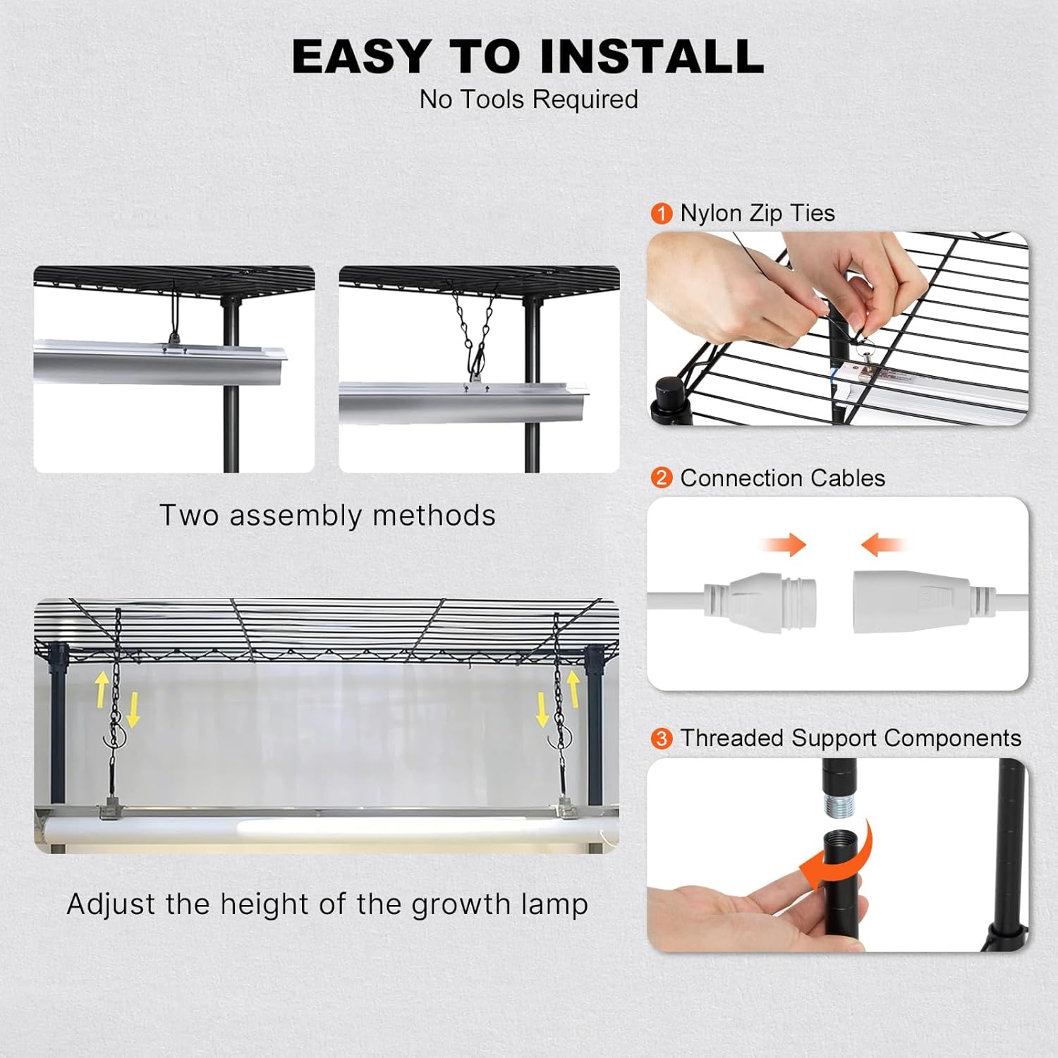 - Easy Assembly: The plant grow shelf with cover features optimized connection components with a unique cylindrical design, simplifying the assembly process. Clear instructions guide you through each step, making it easy to set up and adjust the rack on your own.