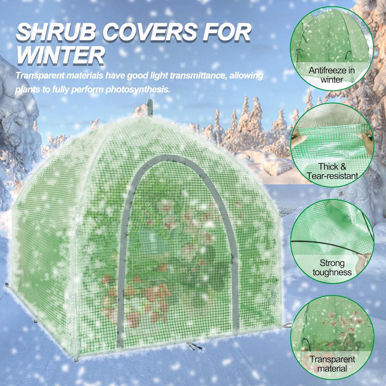- Winter Greenhouse - Winter protection for plants is used for cold protection, just like a small greenhouse. Help plants survive the harsh winter safely. Winter plant protectors have excellent light transmission for plant photosynthesis needs. Effectively prevents winter wind, rain and snow from harming plants, allowing plants to grow better.