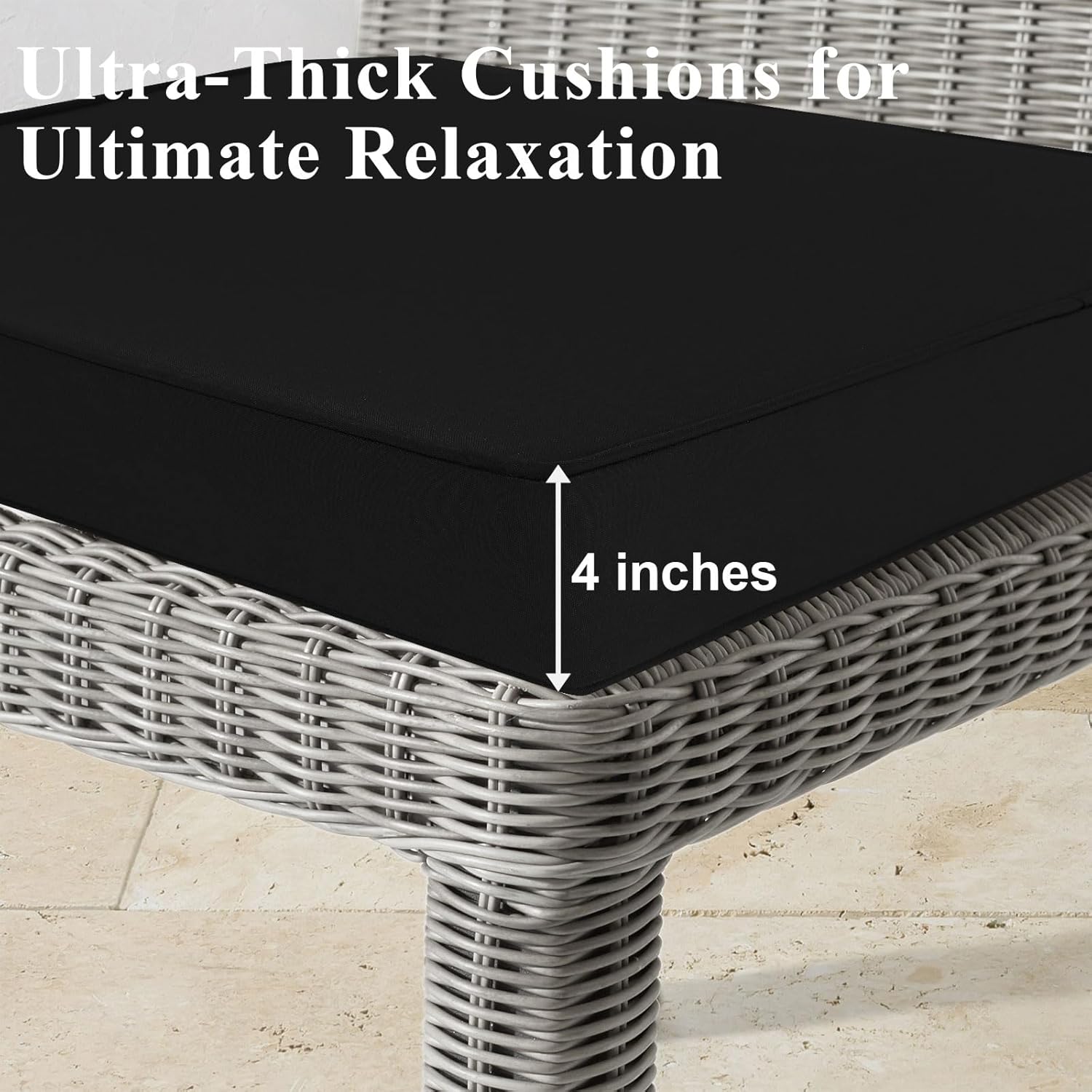 - HIGH RESILIENCE FOAM SUPPORT:We use thicker 4 inch high resilience premium foam, super soft and comfortable. Premium sofa level hardness provides excellent elastic support and effectively relieves pressure on your body. Reduce the pain of lumbar, back and hip. MJIAIDEA Outdoor furniture cushions are not easy to deform after sitting for a long time