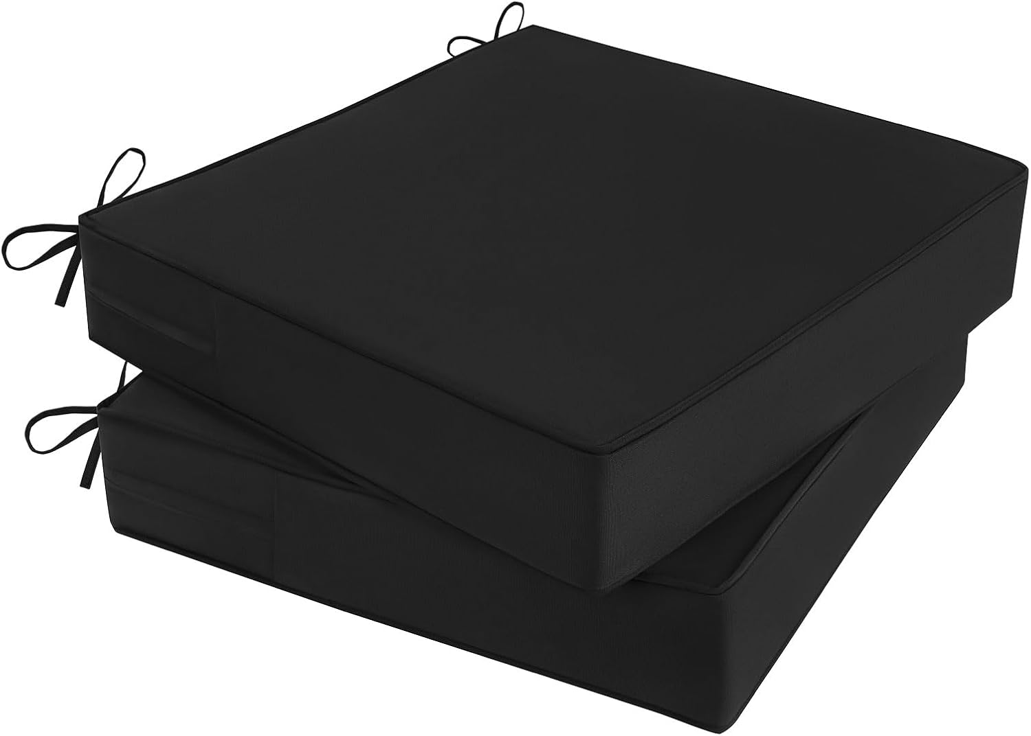 Outdoor Chair Cushions Set of 2 for Patio Furniture 19x19x4 Inch Waterproof Patio Chair Cushion 3 Year Color Fastness Square Elastic Foam Garden Couch Pads with Ties and Handle,Black