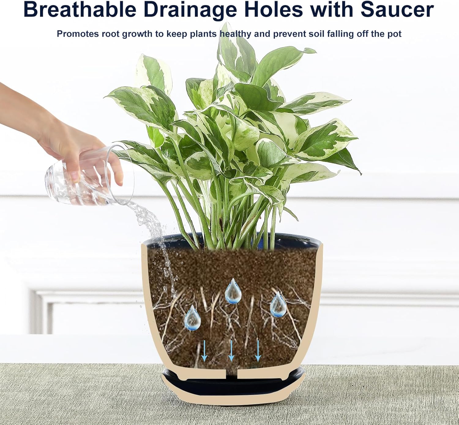 - Ceramic Plant Pots with Drainage Hole: Each small plant pot measures 3.5''W*2.8''H , which is the ideal for growing small and medium sized plants, such as succulents, snake plants, cactus, orchid and small flower. The flower pots has a central drainage hole and saucer to ensure adequate drainage and ventilation to avoid root rot, and include a 1.7 inch diameter mesh to prevent soil from falling out