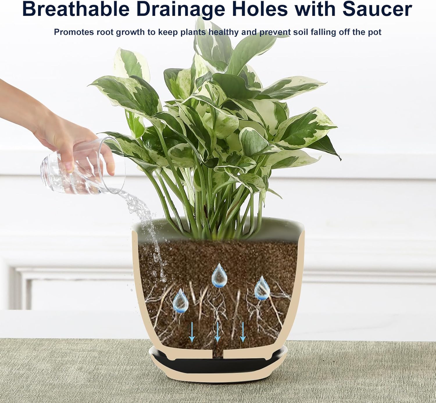 - Minimalist Design of Houseplant Pot: These indoor planters are designed with four different embossed patterns that make it easy to mix and match plants to create a elegant look, decorating windowsill, tabletop, shelve, kitchen, living room, bedroom, office, garden and patio. These flowerpots have a minimalist design and combination solid color glaze that blend seamlessly with a various of home styles