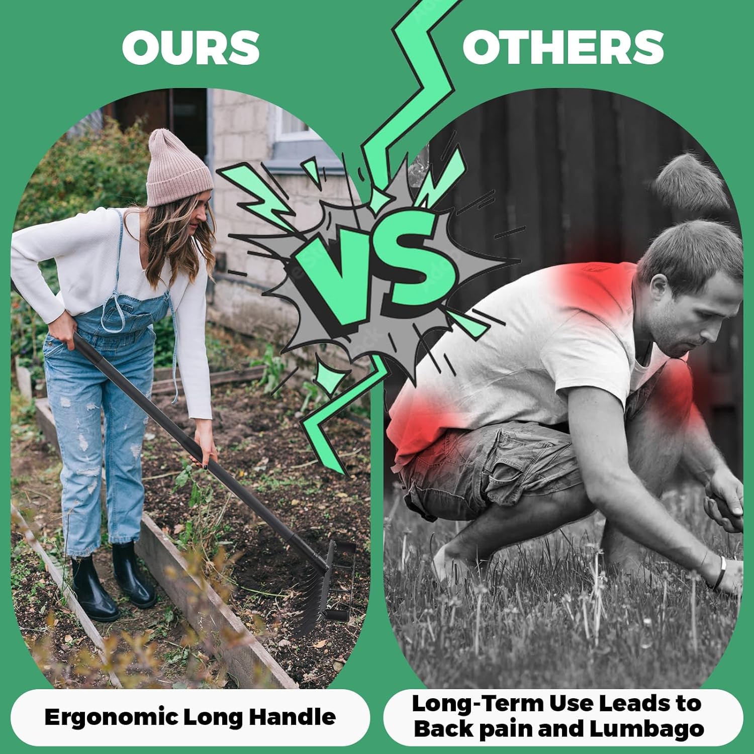 - Versatile Garden Tool: The Weed Puller features a 2-in-1 design with a Hula Garden Hoe and a 12 Tines Rake, making it an essential garden tool for efficient weeding and soil cultivation.