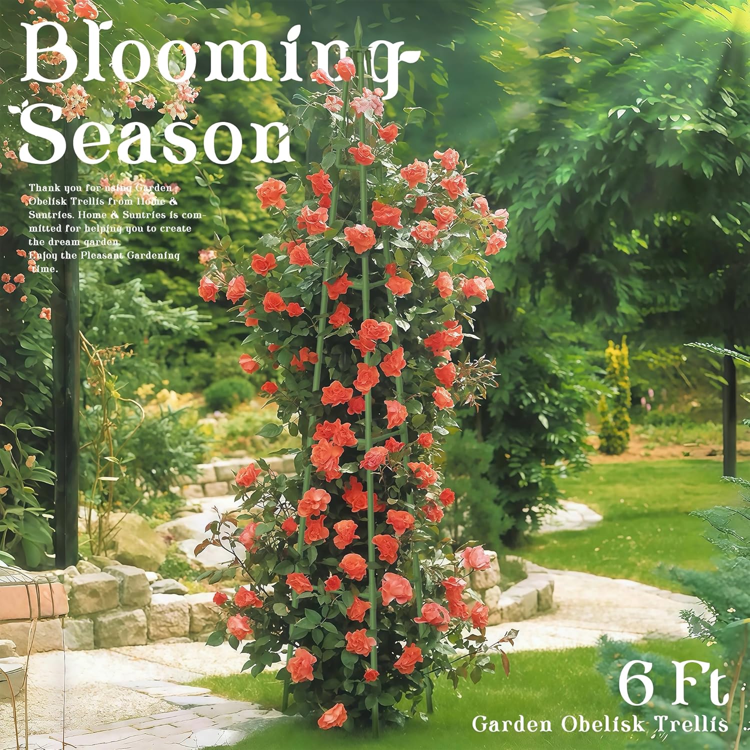 6FT Obelisk Trellis for Climbing Plants Outdoor, 16mm Rust-Proof Extra Thickened Plastic-Coated Metal Pipes, Indoor Climbing Support for Potted Plants, Vines, Flowers Stands,Green