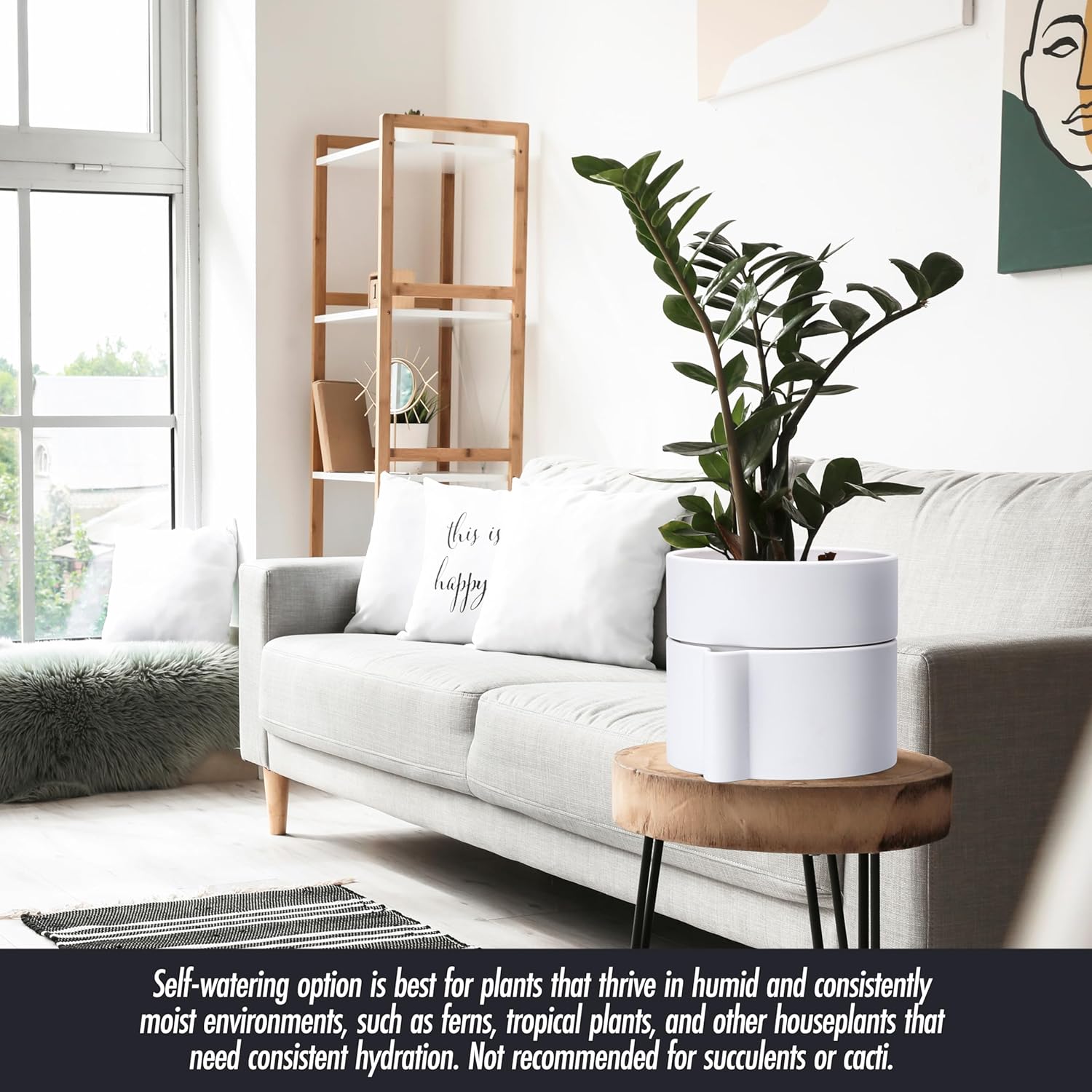 Phoenix Vine 8 Inch Self-Watering Planter Pot with Terracotta Insert, Deep Water Reservoir, and Ceramic-Alike BPA-Free Plastic Planter Pot for Plant, Modern Planter for Houseplants, White, 53-A-T-1