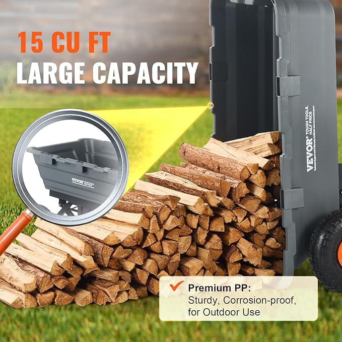 - Safe Transport: Included mesh cover and cushion ensure item safety, our yard dump cart is suitable for various settings from gardens, orchards, and farms to warehouses, efficiently completing transport tasks.