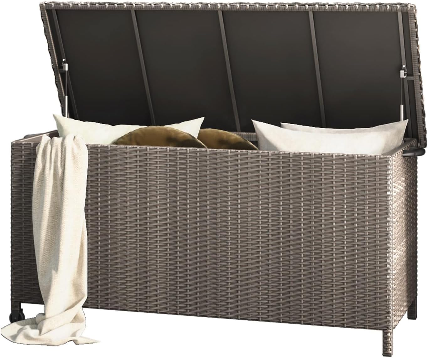 - WEATHER RESISTANCE: Featuring a long-lasting premium PE brushed wicker with natural-rattan look and recyclable.Powder coated steel frame and a PP board in the cover plate at the top of the outdoor storage box, it’s designed for years of beauty